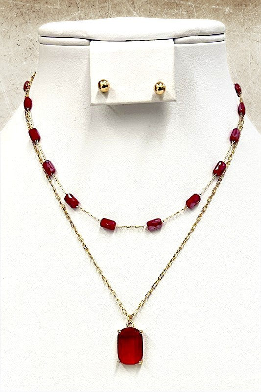 gemstone, gem, gem pendant, layered, gem accent, necklace earring set,