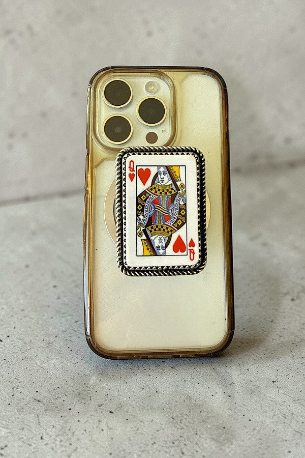 poker, playing card, queen, heart, pop, phone accessory, pop-up, phone grip, sticky, western, cowgirl, cowboy, western accessory, cowgirl style,