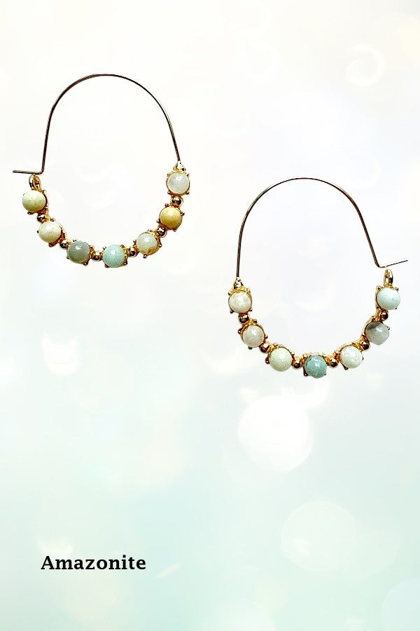 ROUND SEMI PRECIOUS BEAD STATIONED HOOP EARRING, APPROX SIZE:1 1/2"