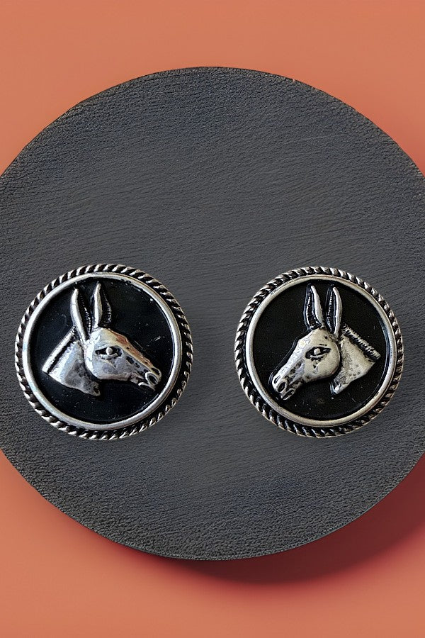 WESTERN DONKEY HEAD PORTRAIT ROUND POST EARRING