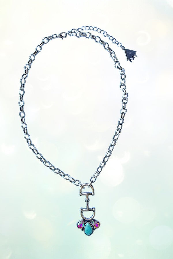 WESTERN SNAFFLE BIT TQ GEMSTONE PENDANT CHAIN NECKLACE