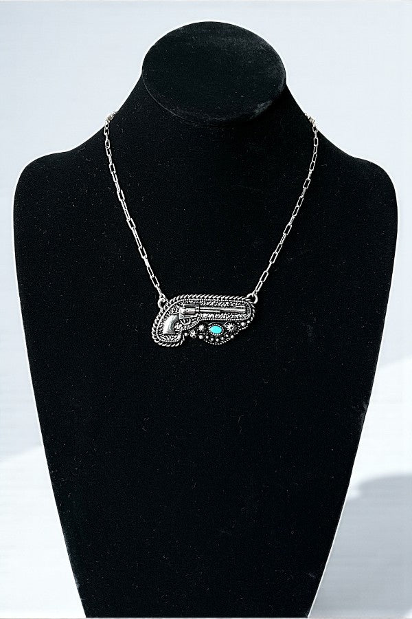 WESTERN TQ ACCENT PISTOL PENDANT NECKLACE, APPROX LENGTH: 16", PISTOL APPROX SIZE: 2"