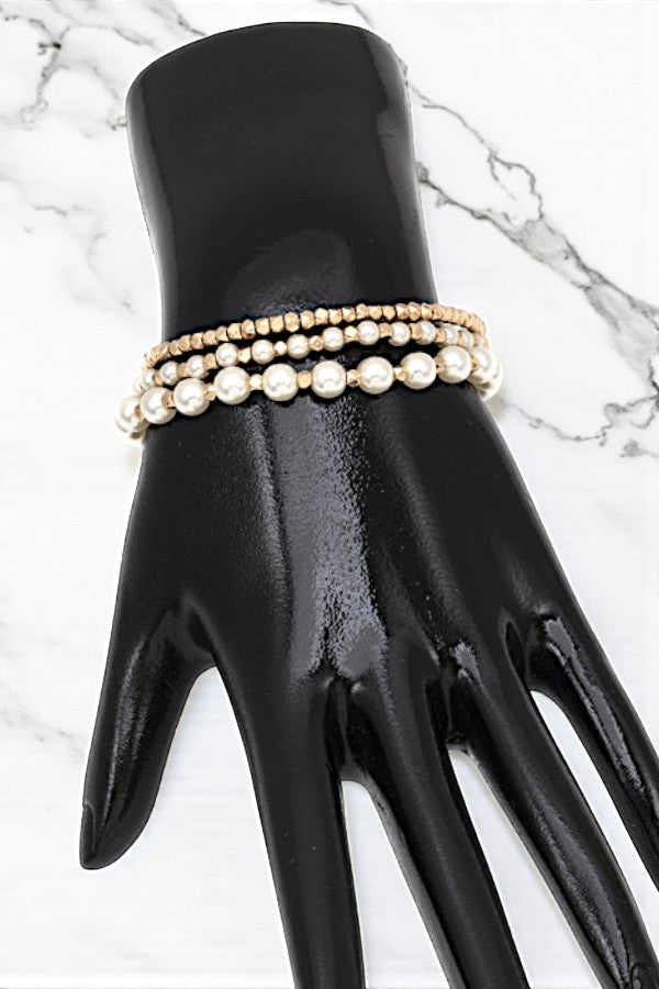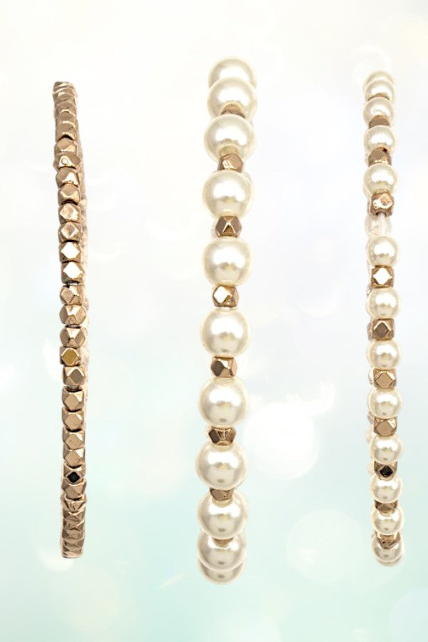 PEARL SMALL BEAD ACCENT BRACELET SET , 3 SEPARATE BRACELETS