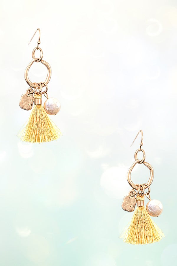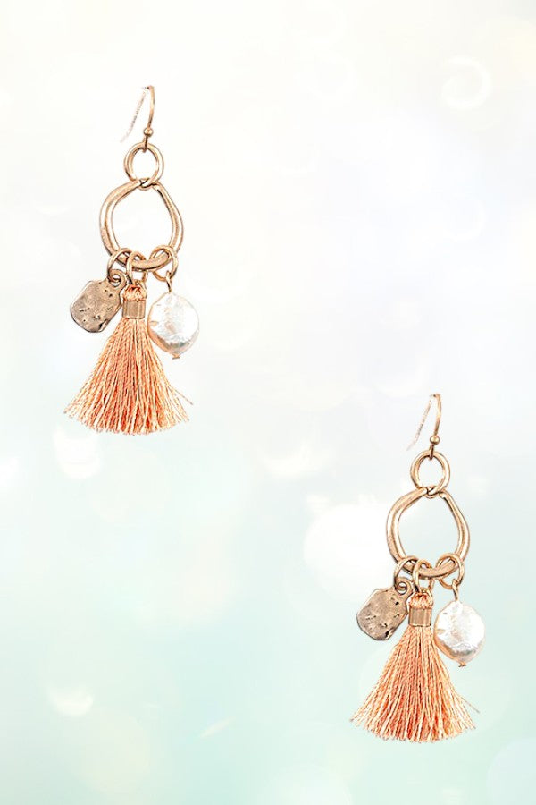 FRESHWATER PEARL TASSEL DROP RING DANGLE EARRING
