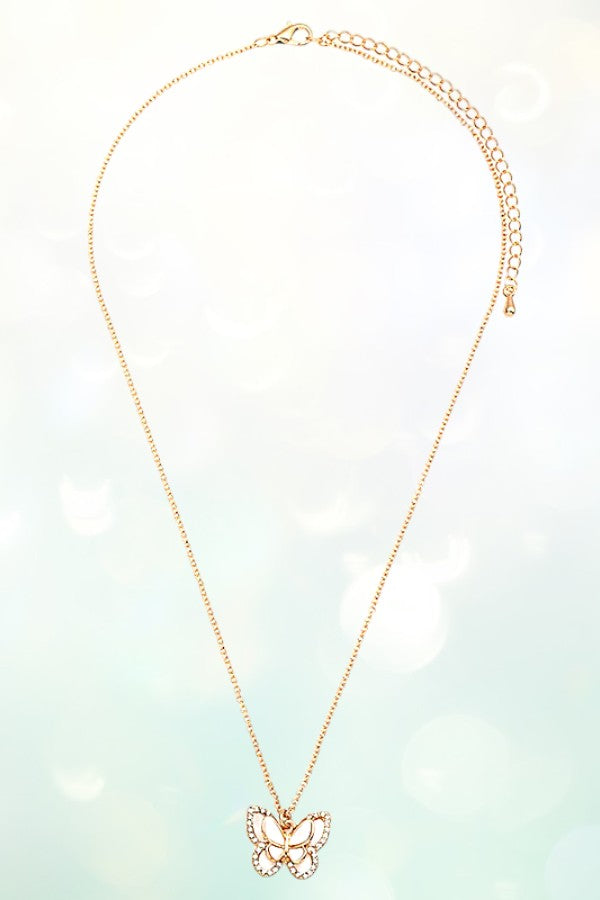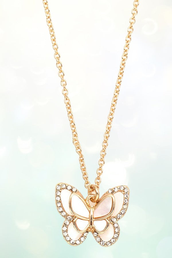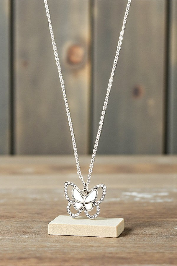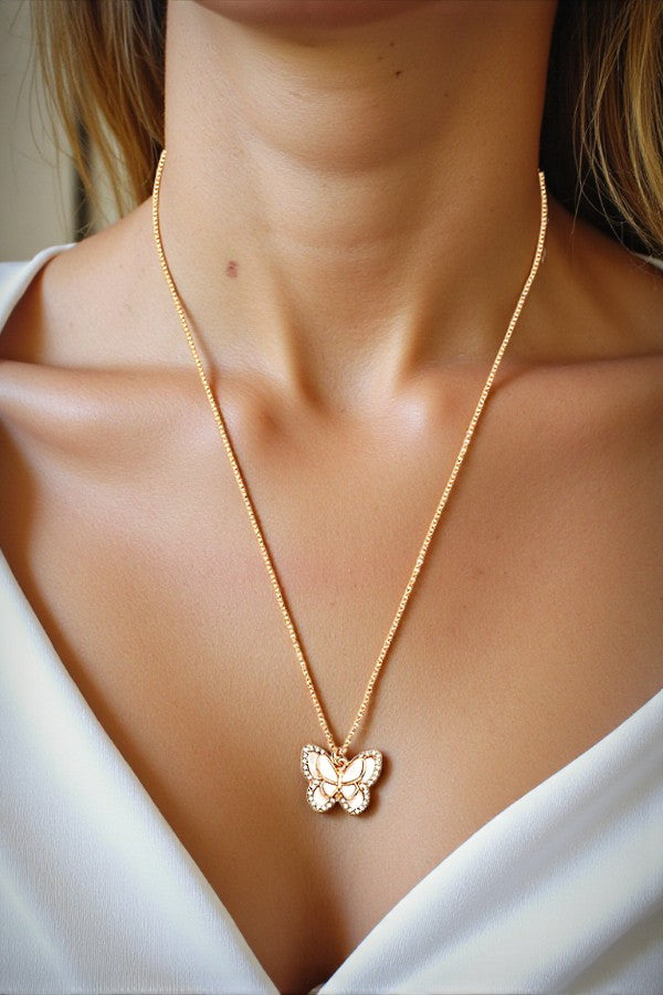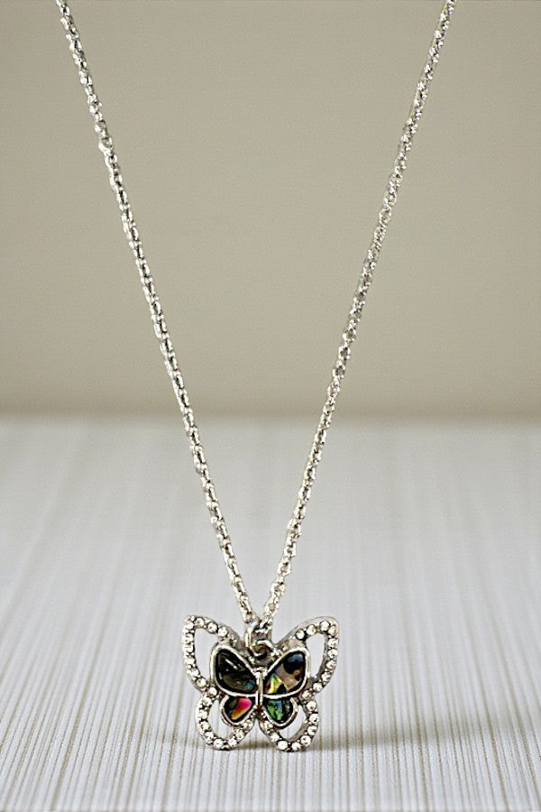 ABALONE AND MOP BUTTERFLY PENDANT NECKLACE
