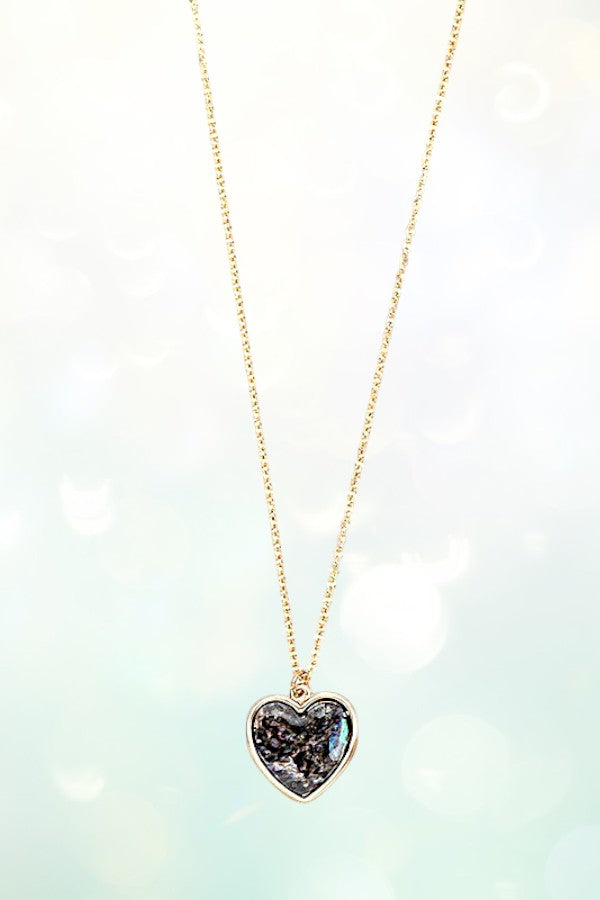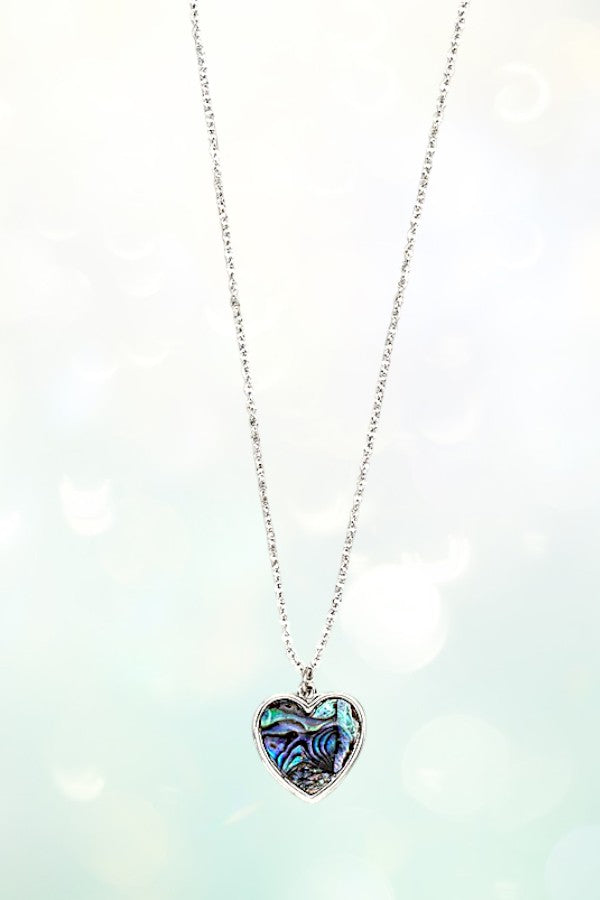 GENUINE ABALONE STONE HEART PENDANT NECKLACE