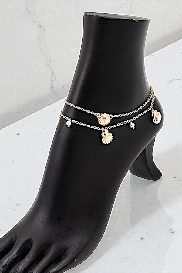 SHELL PEARL DANGLE LAYERED ANKLET