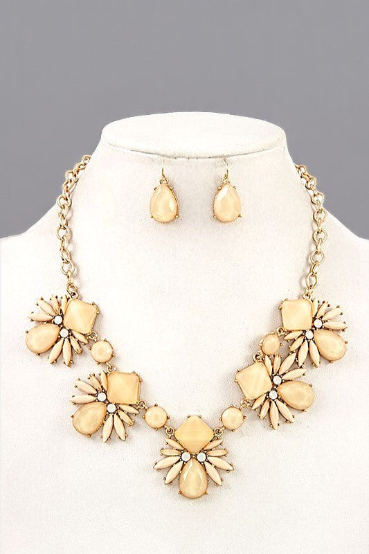 statement, necklace earring set, bridal, evening, party, floral, collar, bib,