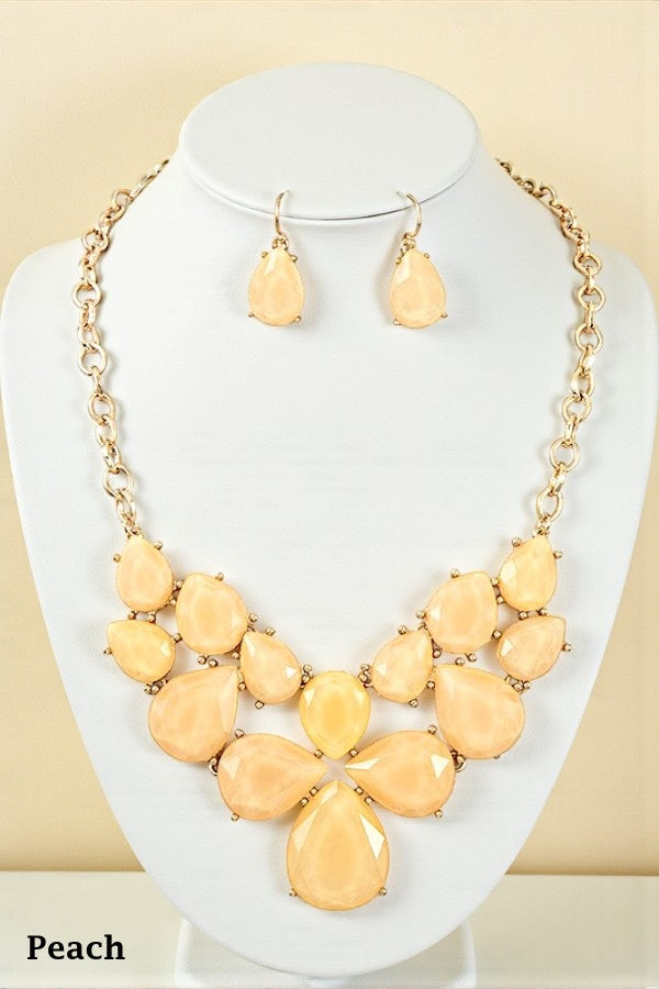 bib, collar, statement, necklace earring set, stone, gemstone, framed, oval,