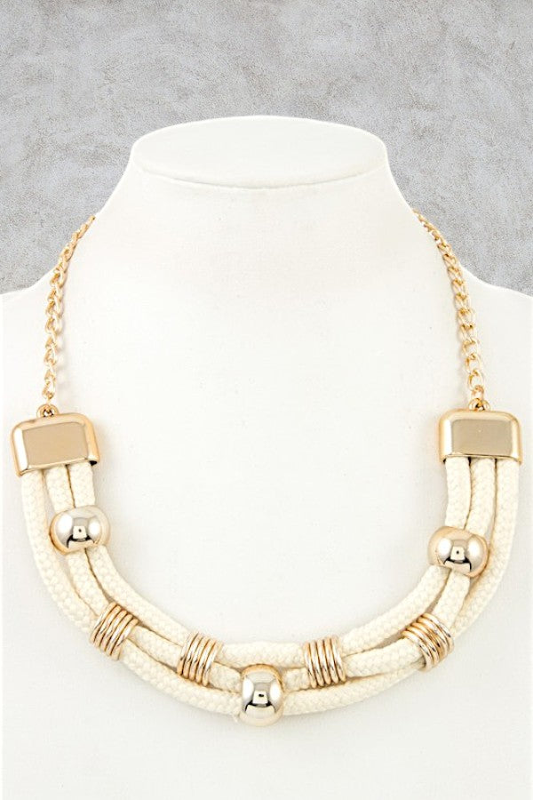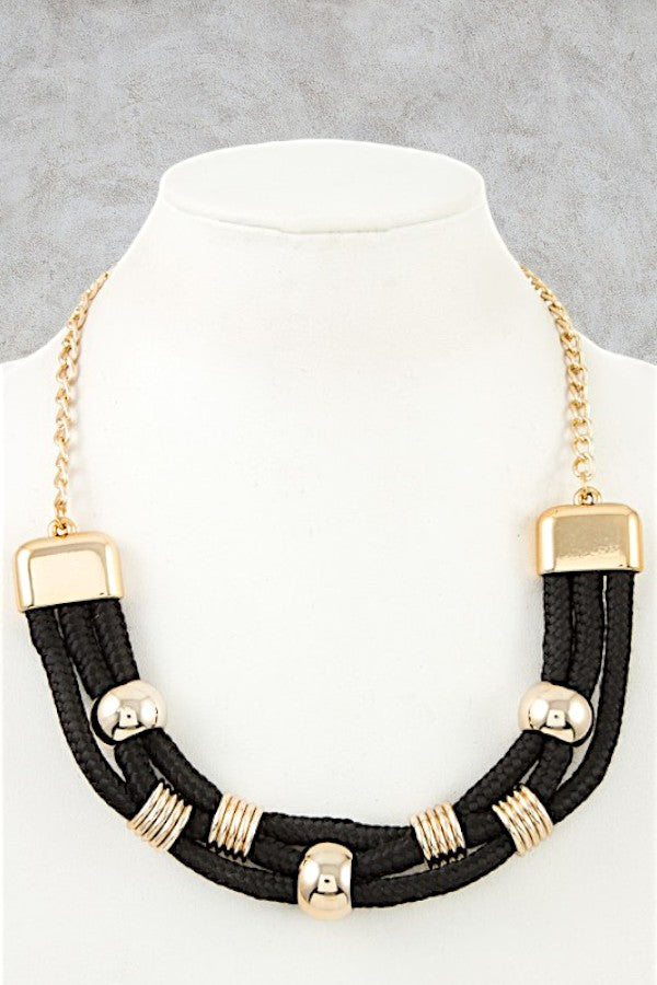 TRIPLE ROPE WITH METAL ACCENT STATEMENT NECKLACE, APPROX LENGTH:19"