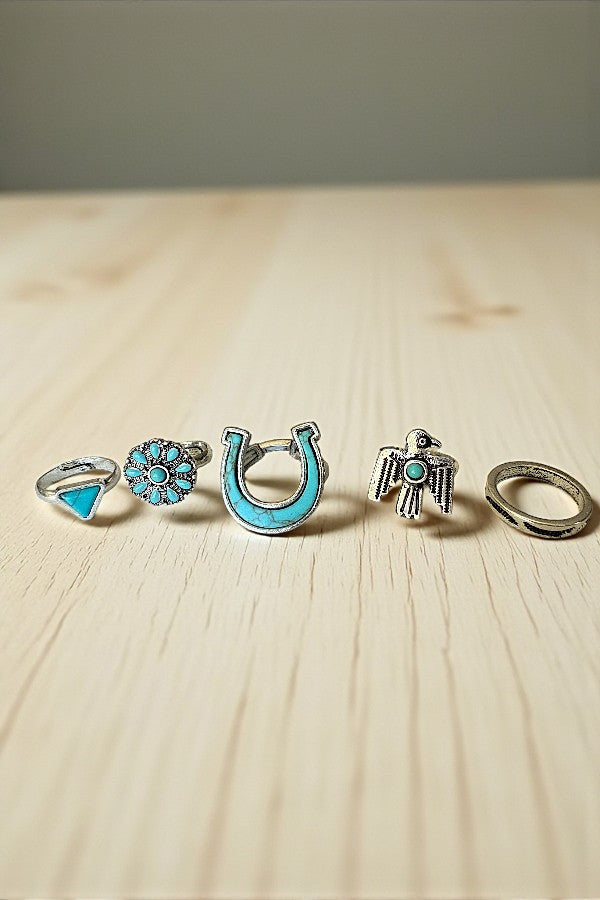 TQ GEM ACCENT WESTERN DESIGN 5 CUFF RING SET