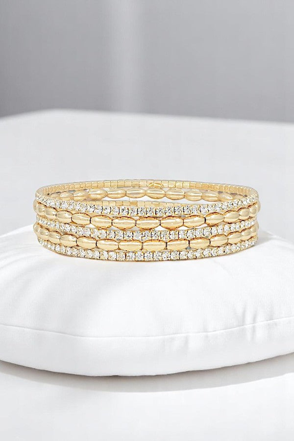 water resistant, stretch, 5 layer, multi set, tennis bracelet, metal ball, metal bead, beaded, oval bead,