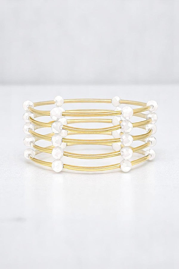 6MM BEADS LINK 5 BRACELET SET, STRETCH BRACELET SET, WATER RESISTANT