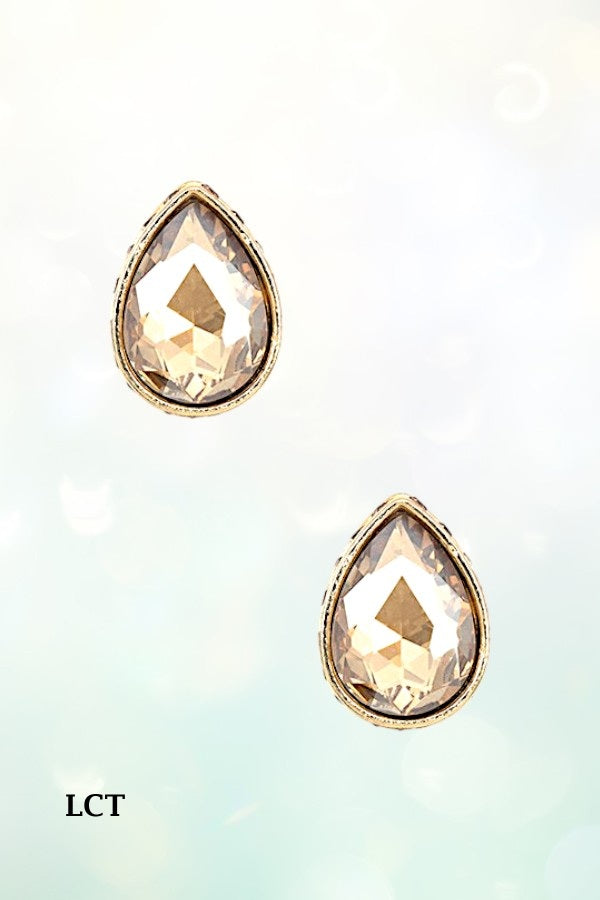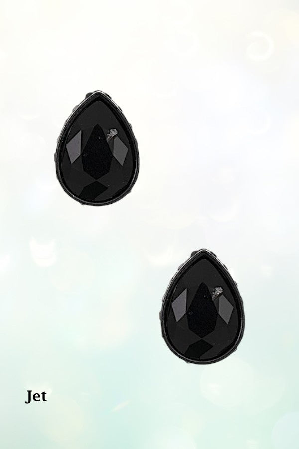 FACETED CRYSTAL GEM TEARDROP POST EARRING , APPROX SIZE: 1"