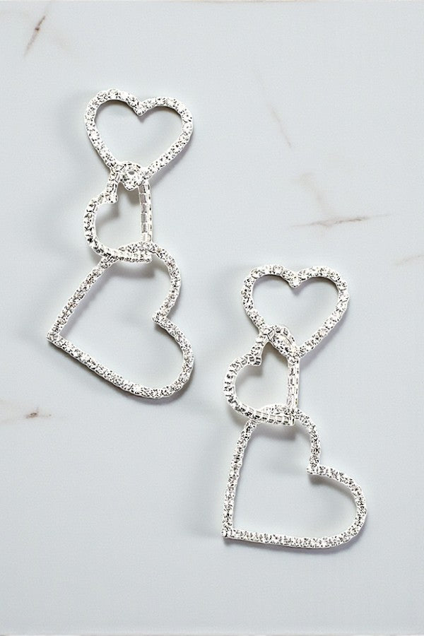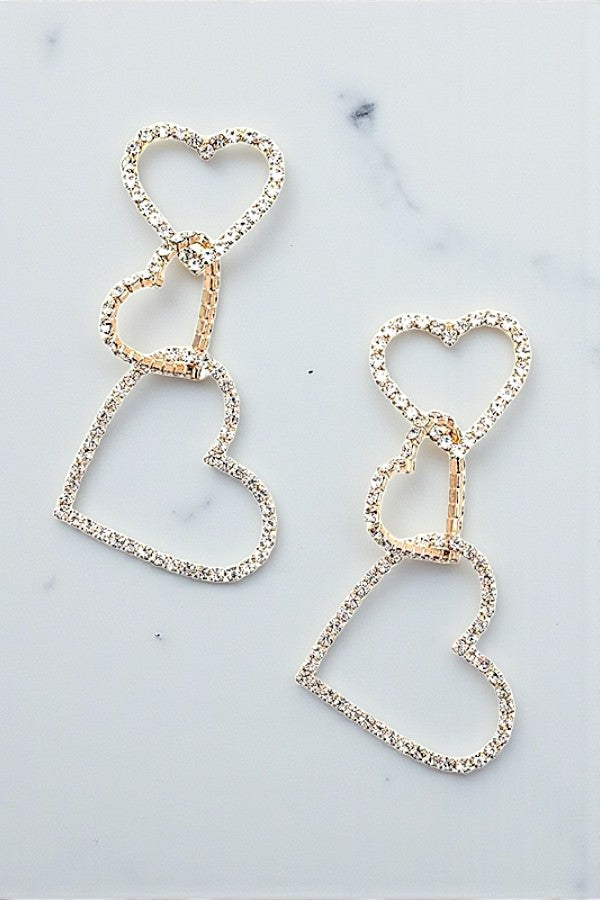 RHINESTONE PAVE TRIPLE HEART LINK DROP EARRING