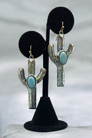 cowgirl, western, tq, turquoise, gem, gemstone, cactus, dangle, patina,