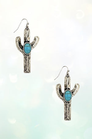 CACTUS TQ GEM ACCENT DANGLE EARRING , APPROX SIZE: 2 1/2"