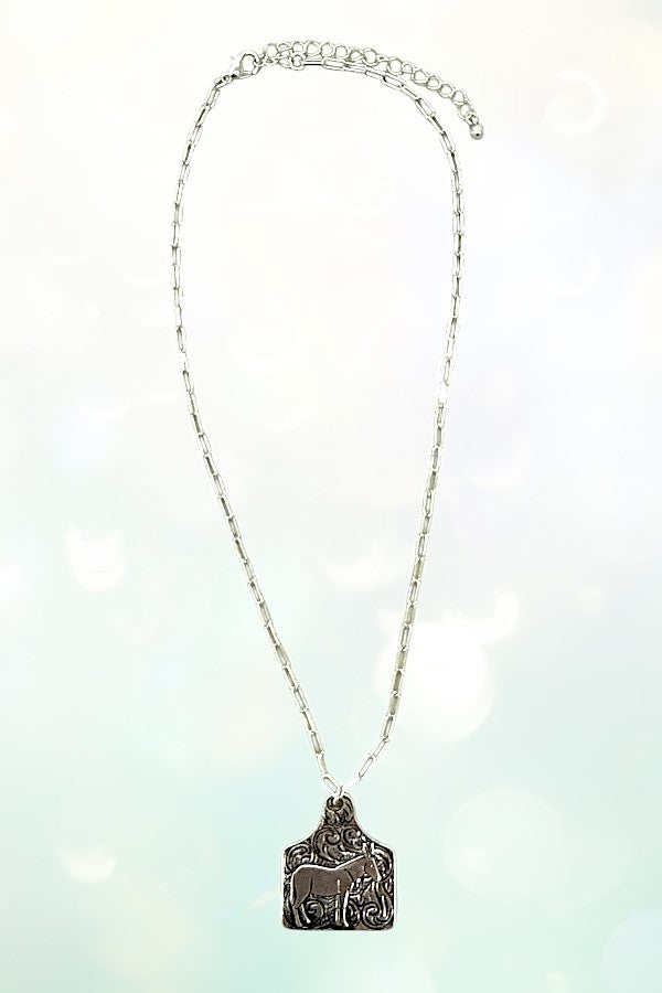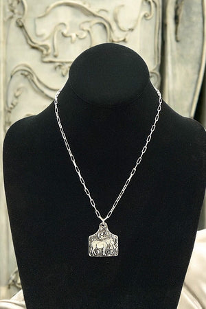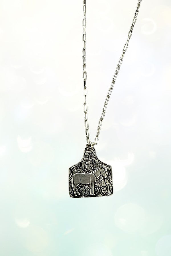 DONKEY ETCHED CATTLE TAG PENDANT NECKLACE, APPROX LENGTH: 16"