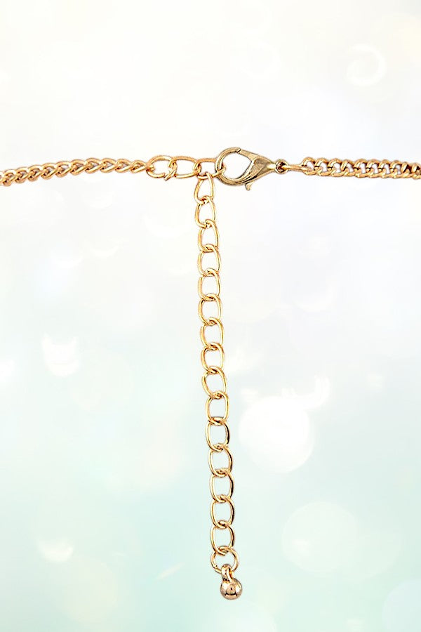 DROP STONES LINK CHAIN TASSEL ACCENT LONG NECKLACE AND BALL BEAD DANGLE EARRING SET