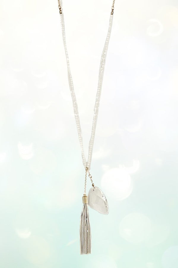 GEMSTONE TASSEL DANGLE PENDANT ELONGATED BEADED NECKLACE