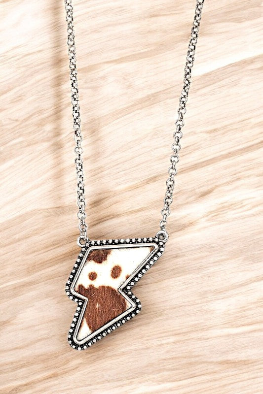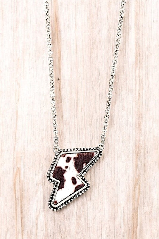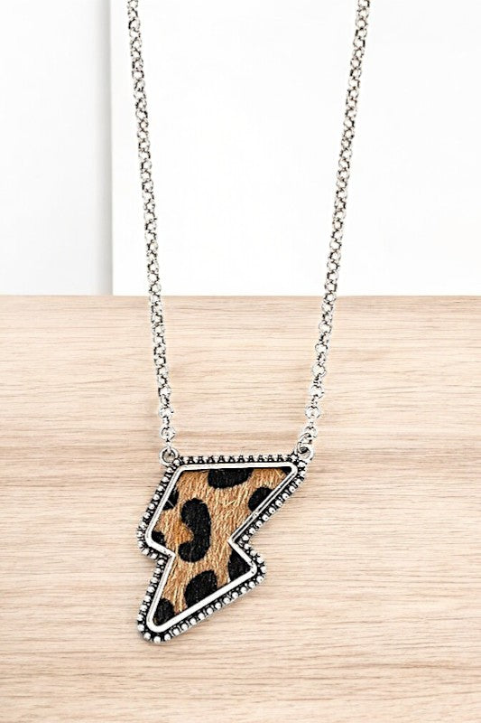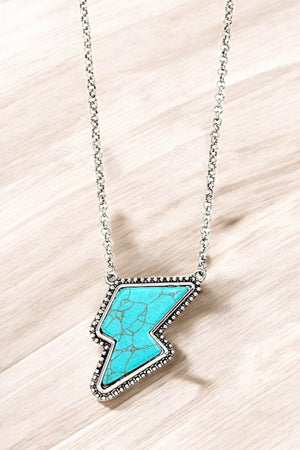 LIGHTENING BOLT PENDANT NECKLACE AND BOLT DANGLE EARRING SET, APPROX LENGTH: 16", EARRING APPROX SIZE: 3/4", WESTERN TURQUOISE GEM AND ANIMAL PRINT PENDANT