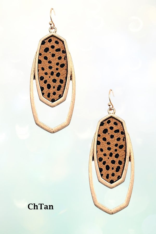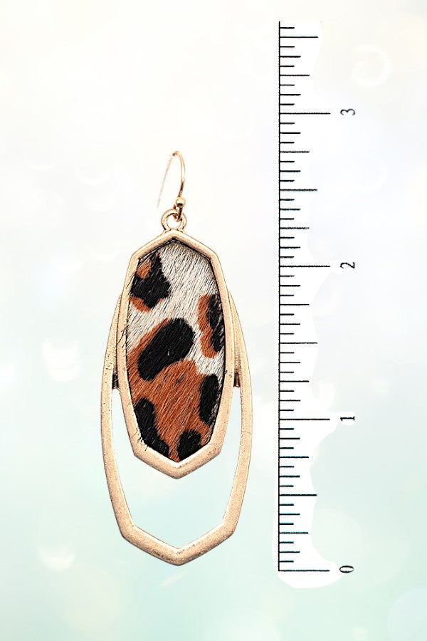 OVAL FRAMED ANIMAL PRINT DROP EARRING