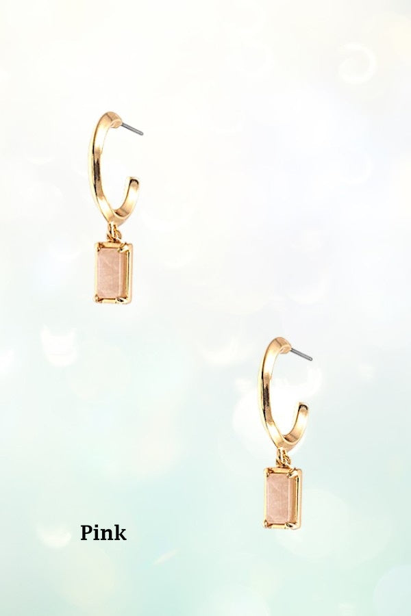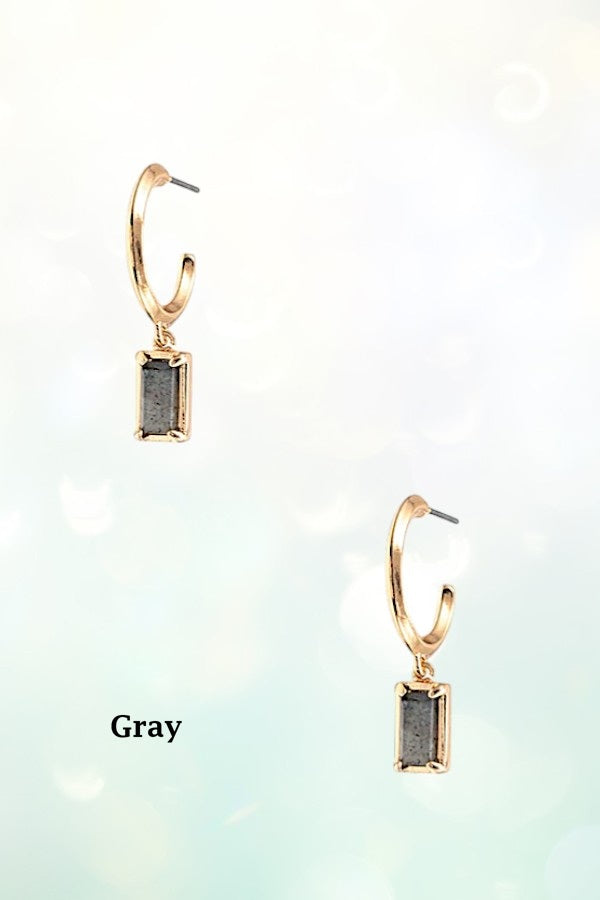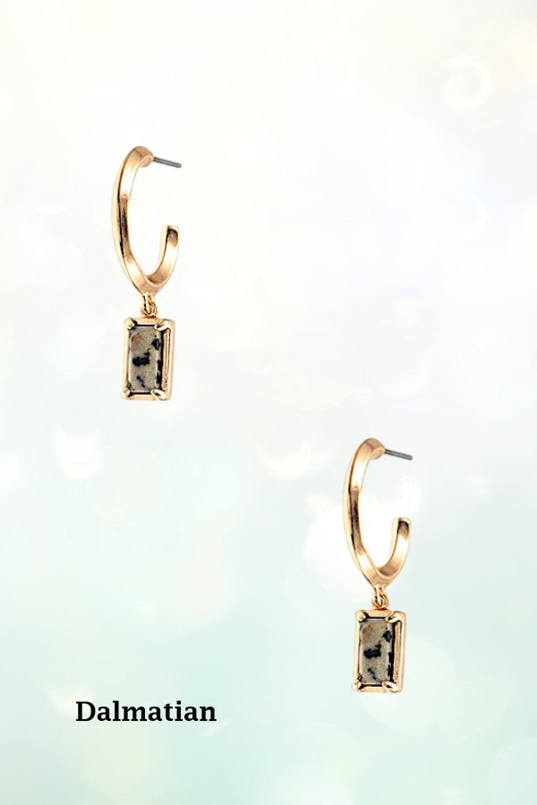 SMALL RECTANGULAR SEMI PRECIOUS GEM DANGLE SEMI HOOP EARRING
