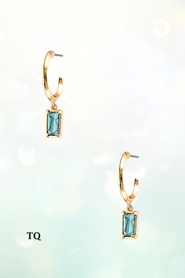 hoop, semi hoop, gem, gemstone, gem dangle, rectangle, rectangular, framed gem, tq, turquoise, semi precious,