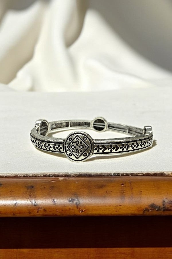 TRIBAL PRINT ETCHED SLIM STRETCH BRACELET, LIGHT WEIGHT/ COMFORTABLE STRETCH BRACELET