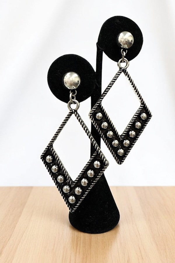 WESTERN DIAMOND CUT BUBBLE DANGLE EARRING, APPROX SIZE: 3"