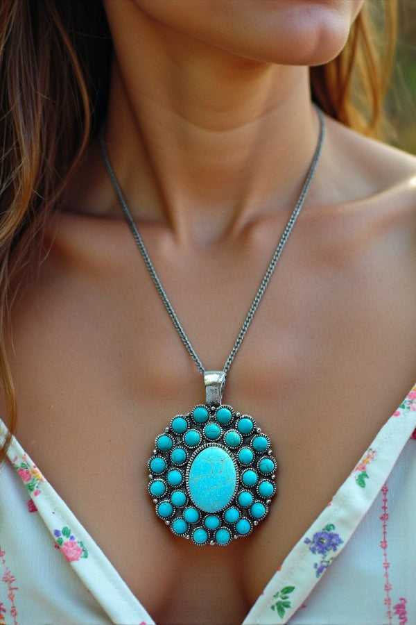western, cowgirl, tq, turquoise, gem, gemstone, pendant earring set, drop earring, dangle, concho, floral concho, magnetic, howdy, rodeo, no chain, pendant only