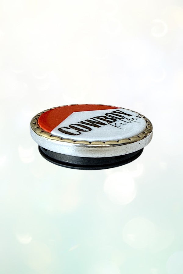 phone grip, phone accessory, vintage, cowboy, cowboy killer, cowboy style, cowboy accessory, cowgirl, western, cowgirl style, tech accessory, pop up, pop-up, button, framed, western accessory, burnished silver,