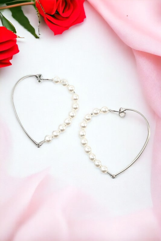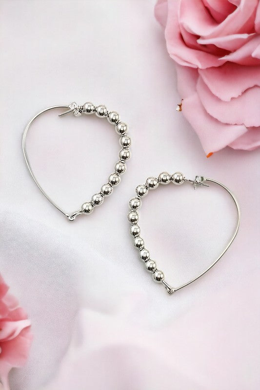 Bead Wire Heart Hoop Earring