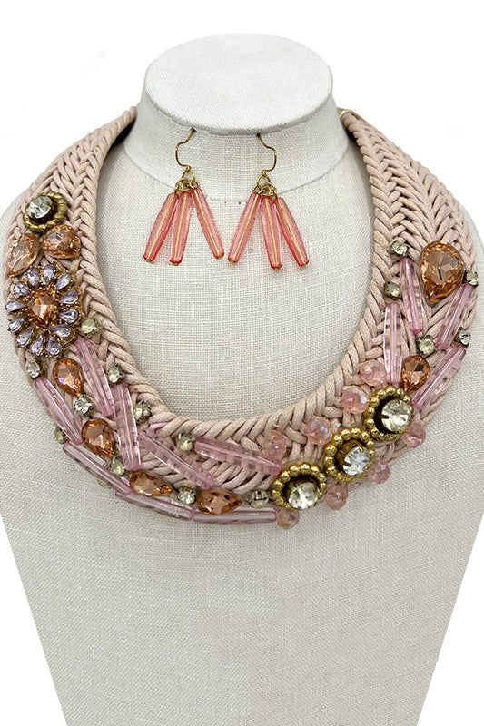 Braided Gemstone Accent Bib Neklace Set Approx Length: 18"