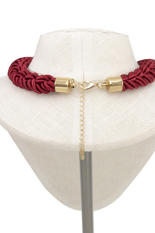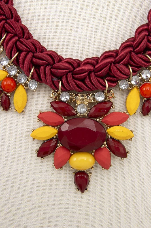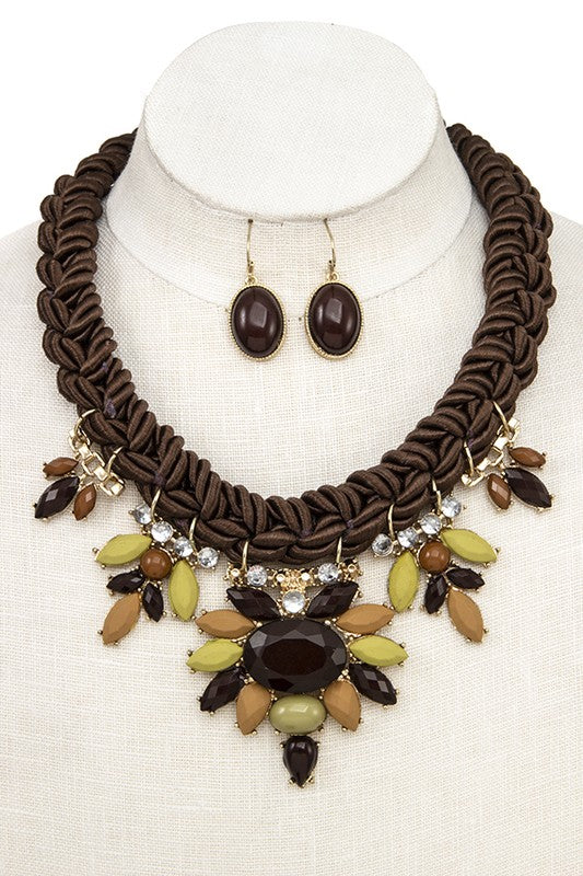 BRAIDED ROPE FACETED ACRYLIC GEM BIB NECKLACE SET