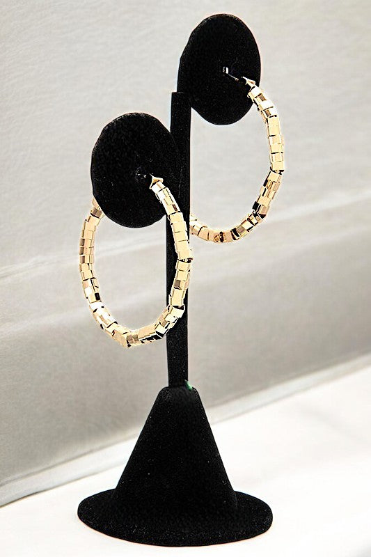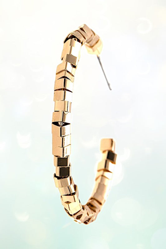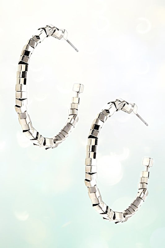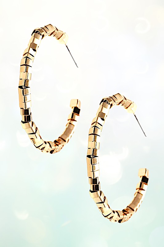 CUBIC BEAD SEMI HOOP EARRING , HYPOALLERGENIC/ GENUINE BRASS , APPROX SIZE: 2"