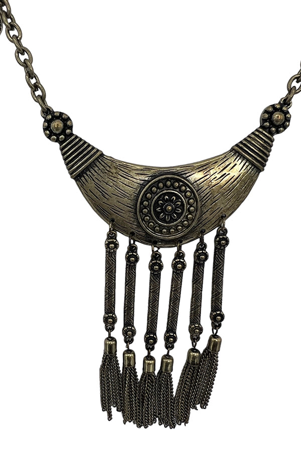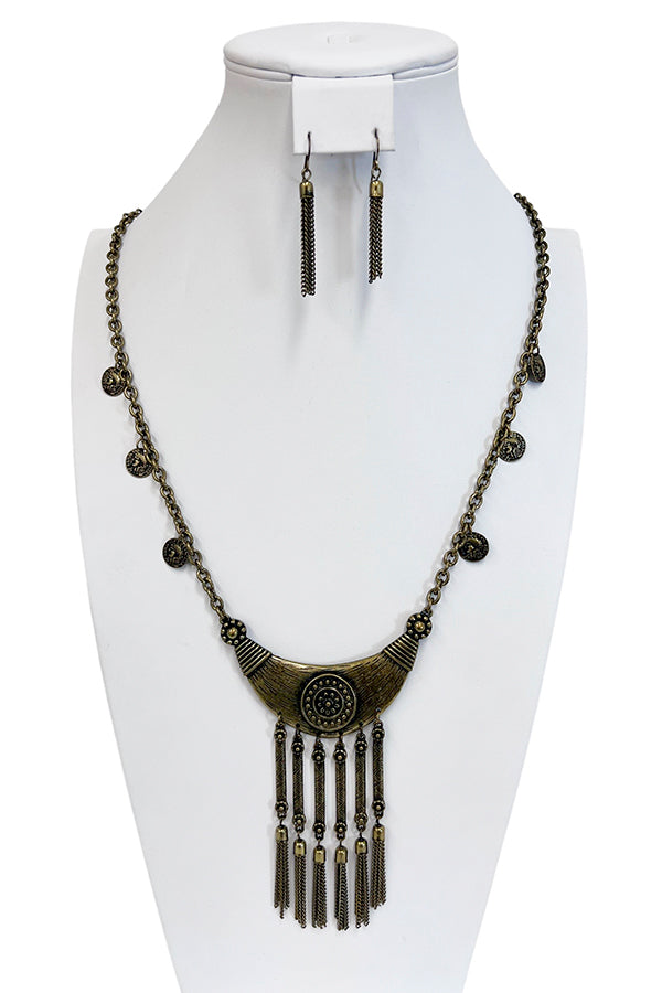 Curved Etched Dangle Ornate Necklace Set