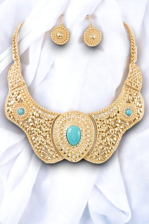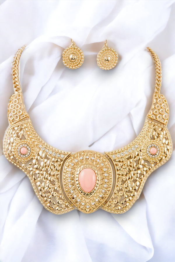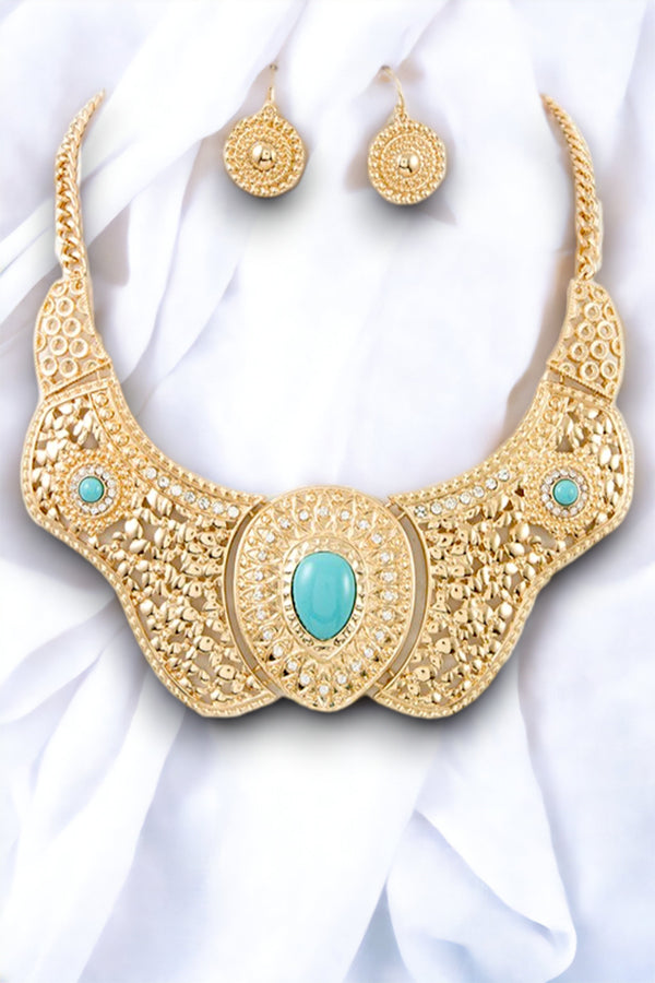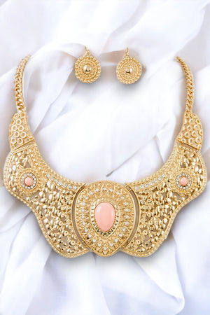 Cut Out Metal Gem Accent Link Necklace Set