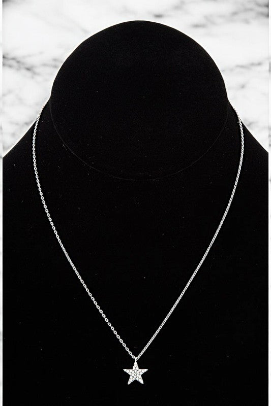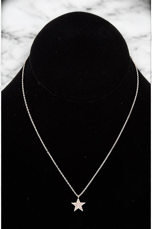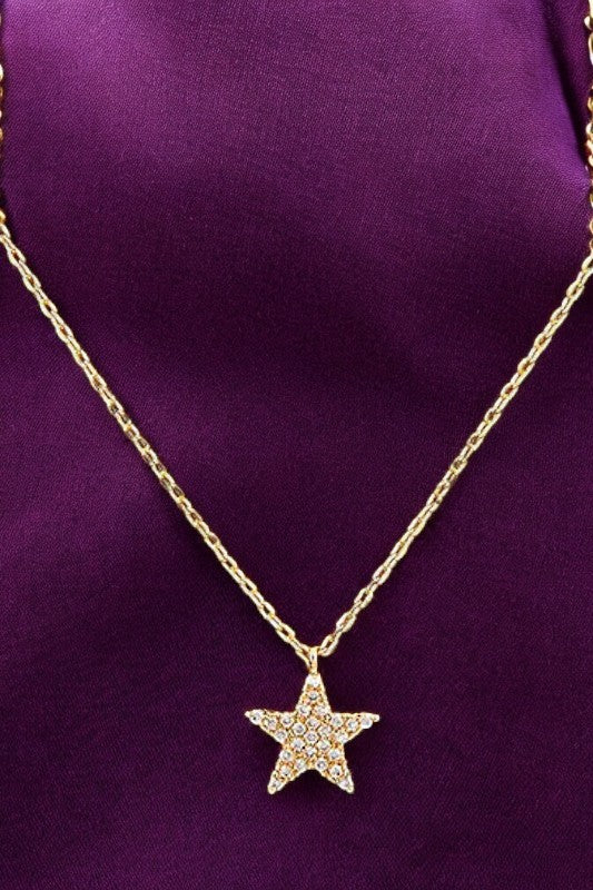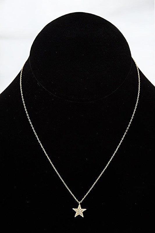 CZ STONE STAR PENDANT NECKLACE , CUBIC ZIRCONIA STAR, APPROX LENGTH: 14" 14.5" 15" , WHITE/GOLD DIPPED , HAND MADE IN KOREA