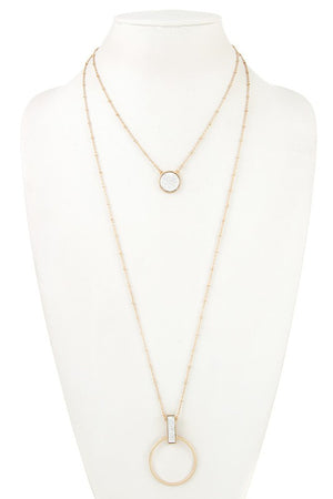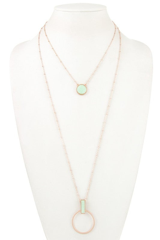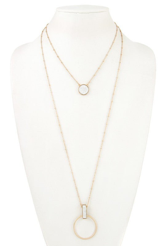DRUSY STONE PENDANT LAYERED NECKLACE