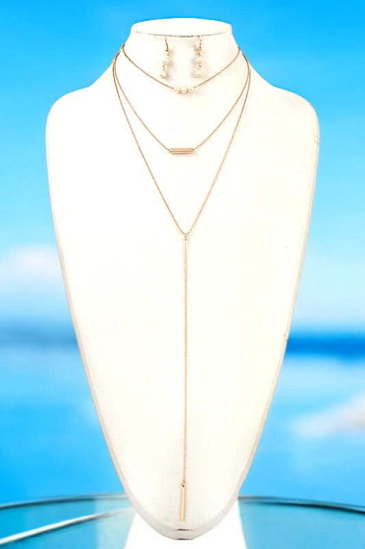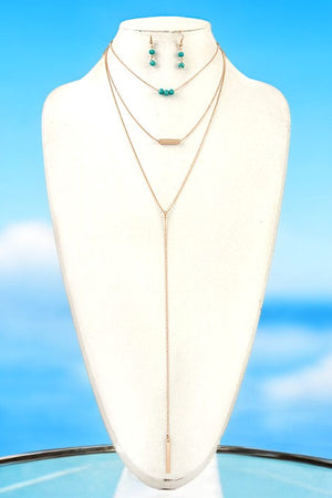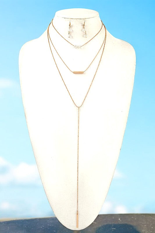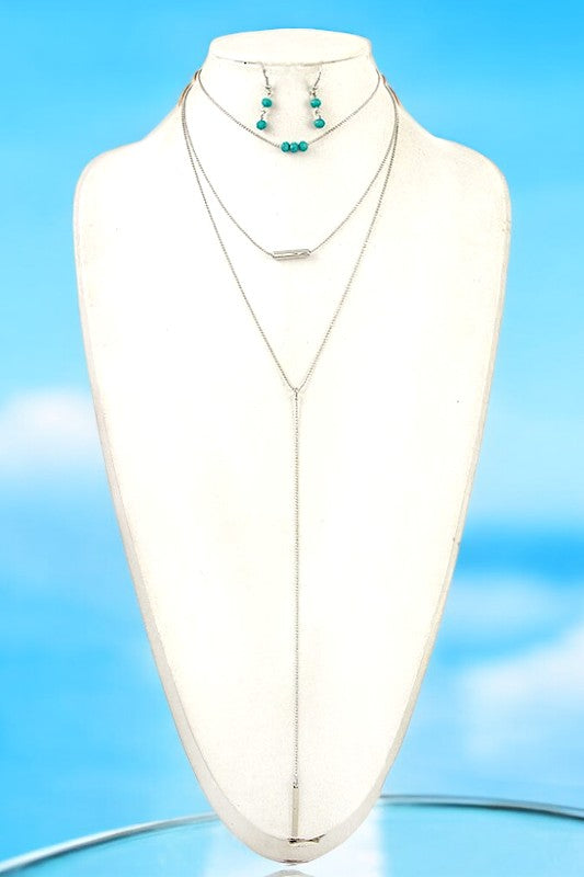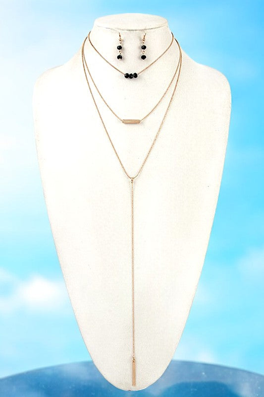 ELONGATED BEADED CHAIN PENDANT NECKLACE AND BEAD DANGLE EARRING SET , APPROX LENGTH:14" 18" 24"
