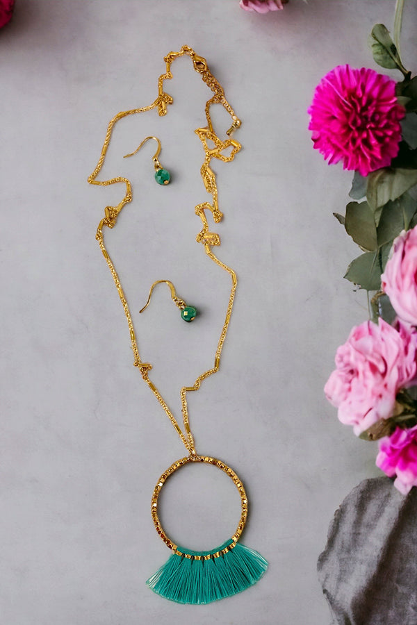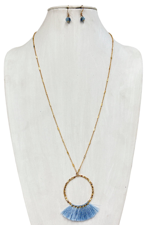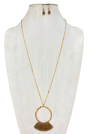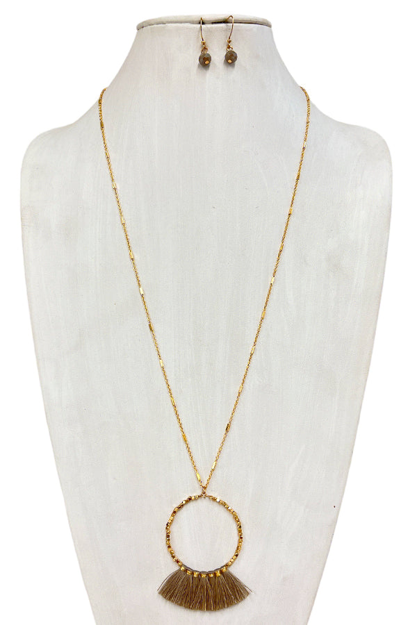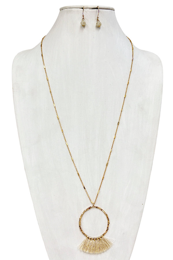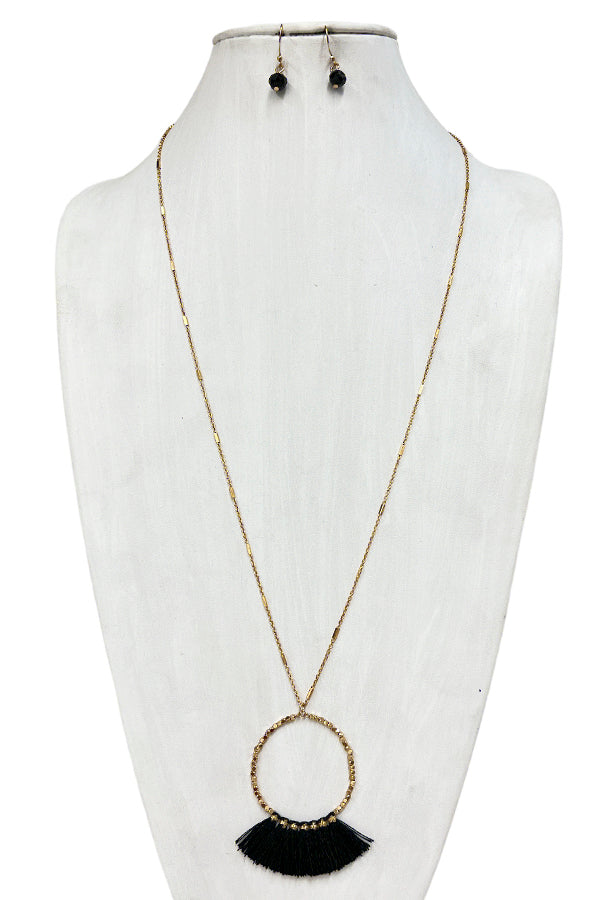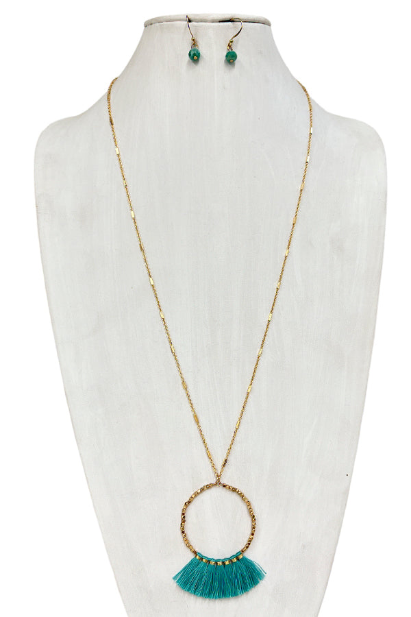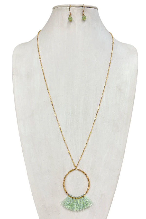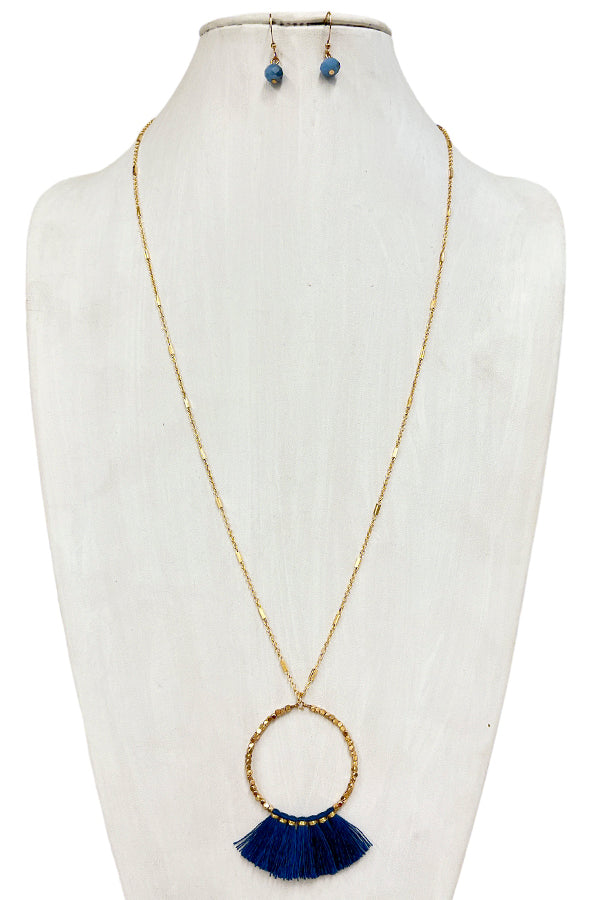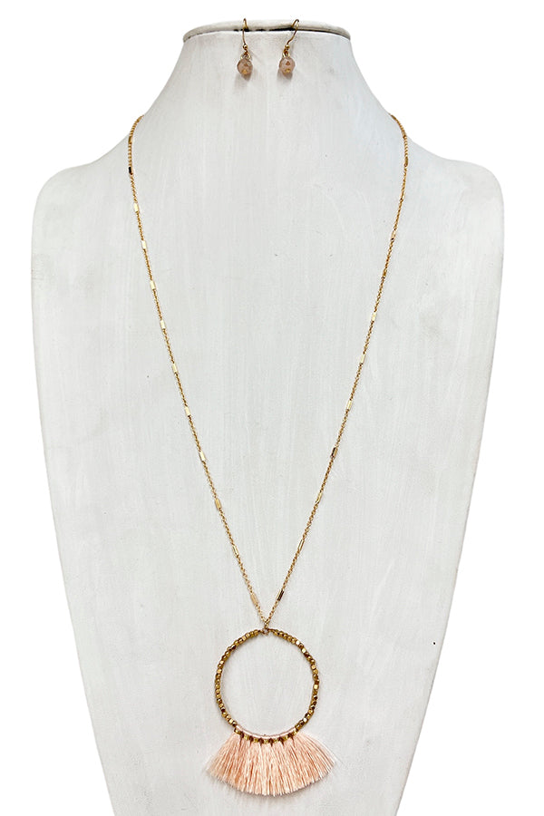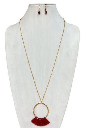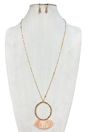 Elongated Mini Tassel Ring Pendant Necklace
