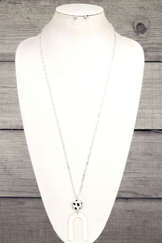 ELONGATED U PENDANT NECKLACE AND BALL POST EARRING SET