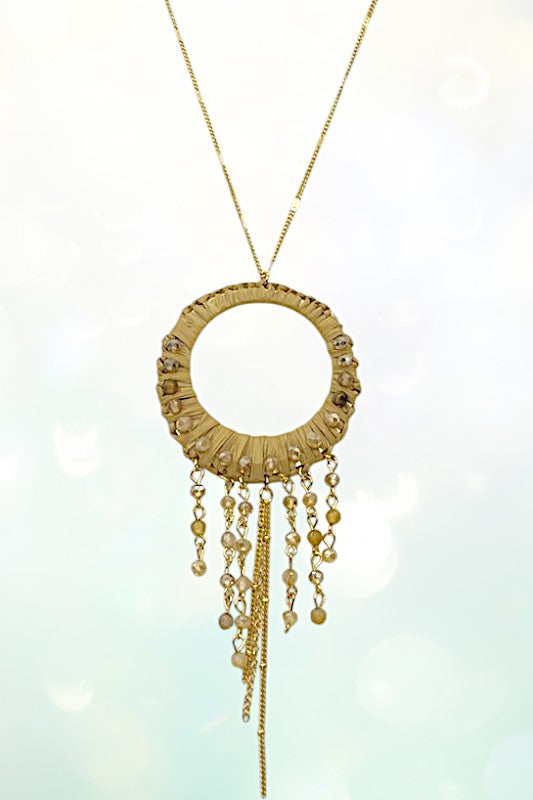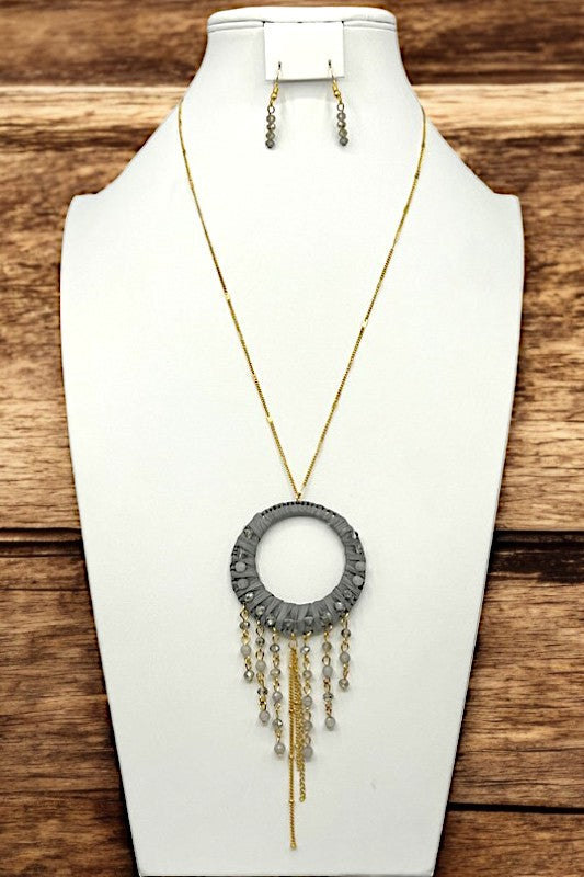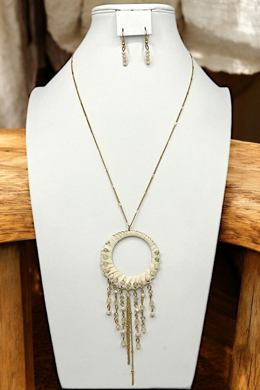 glass bead, long necklace, necklace earring set, woven, pendant,