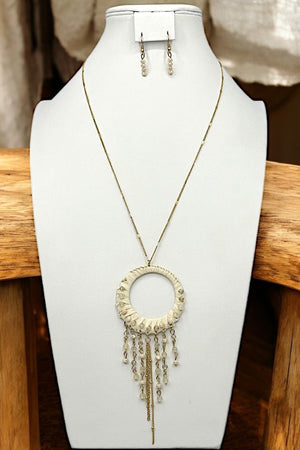 Elongated Woven Glass Bead Necklace and Bead Dangle Earring Set, Approx Length: 30" , Earring Approx Size: 1"