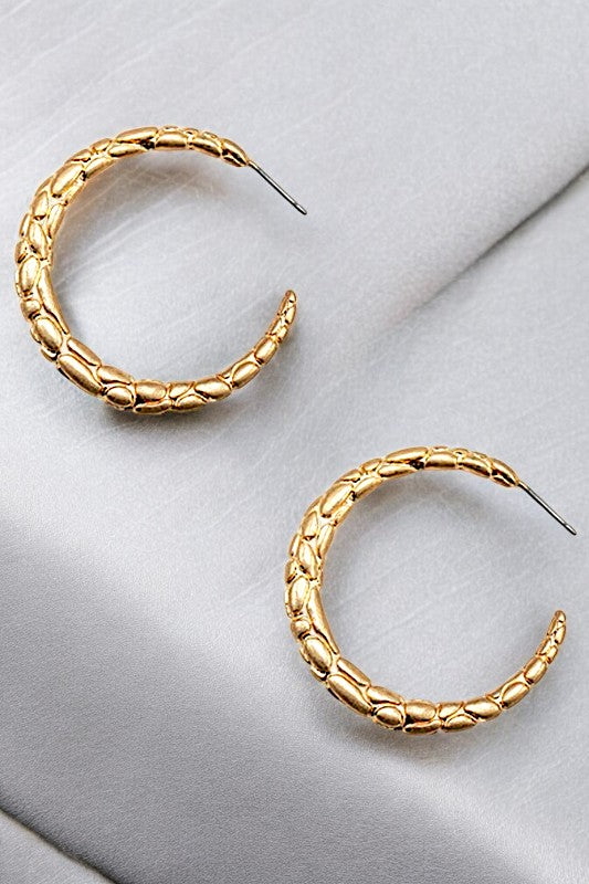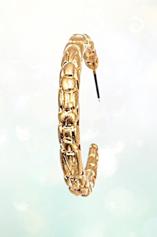 ETCHED SEMI HOOP EARRING, APPROX SIZE: 1 1/2"