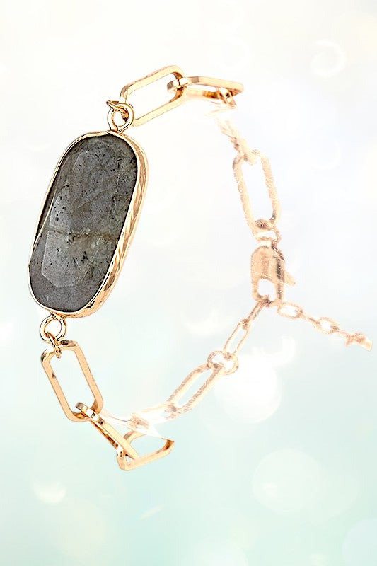 FACETED OVAL GEM CHAIN LINK BRACELET