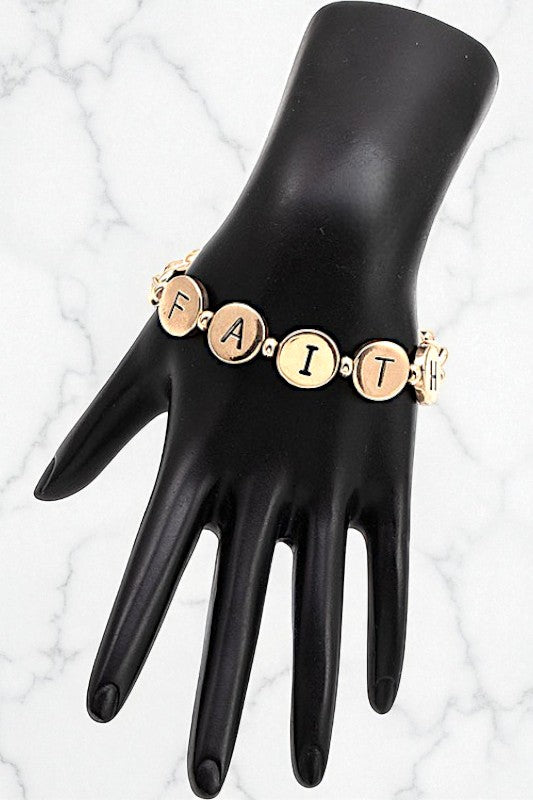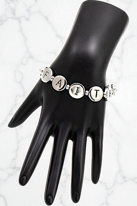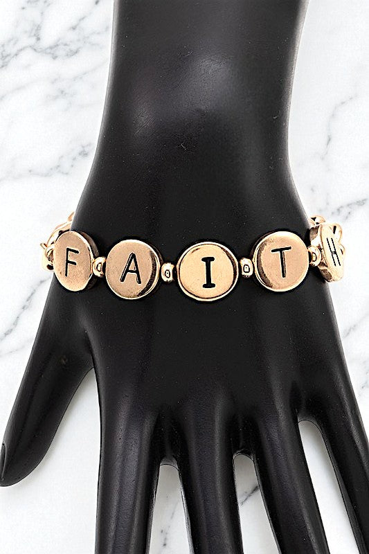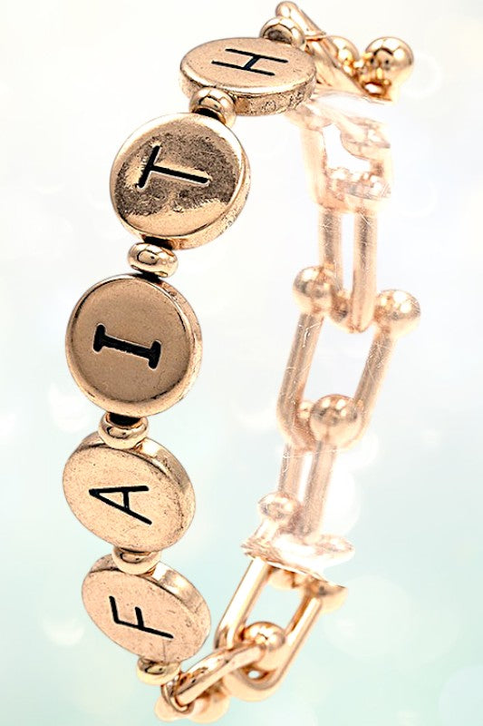 FAITH ETCHED DISK HARDWEAR CHAIN BRACELET