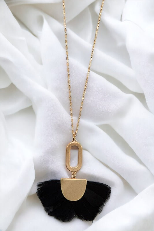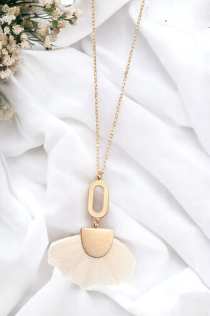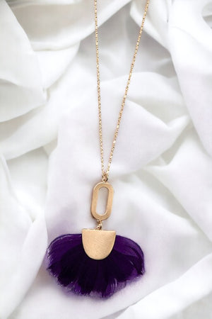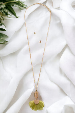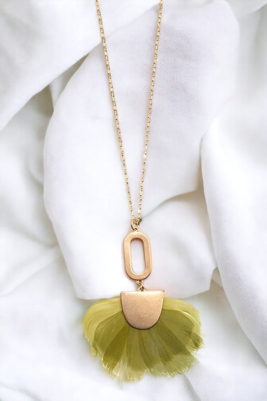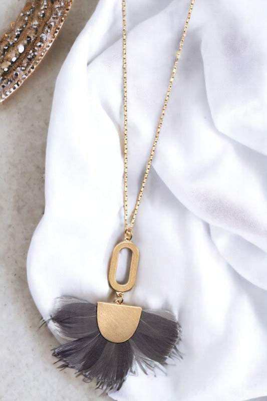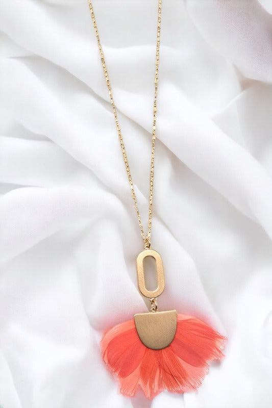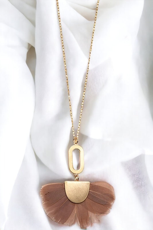 Faux Feather Pendant Long Necklace Approx Length: 30"
