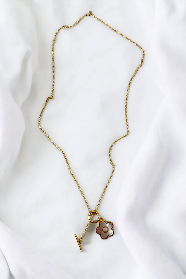 Floral Mother of Pearl Pendant Necklace Approx Length: 16" Toggle Closure